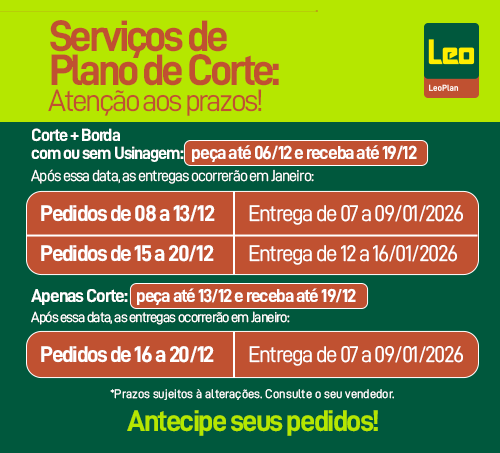 O LeoPlan realiza cortes apenas em chapas de MDF, MDP e compensado.